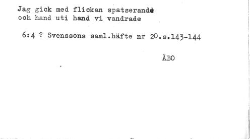//// Jag gick med flickan spatserandd //// och hand uti hand vi vandrade //// 6:4 ? Svenssons saml.häfte nr 2O.S.I43-I44 i //// . //// ÅBO ^ //// ! //// ! //// i //// [ //// i //// . ////