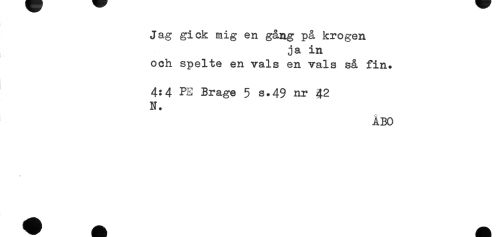 //// Jag gick mig en gång på krogen //// ja in //// och spelte en vals en vals så fin. //// 4:4 PE Brage 5 s.49 nr #2 //// N. //// ÅBO ////