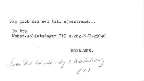 //// Jag gick mej ned till sjöastrand... //// Bo Bro //// Mskpt.soldatsånger III S.282.E.U.25040 //// NORD.MUS. ////