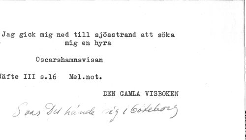 //// Jag gick mig ned till sj oas ti* and att söka //// mig en hyra //// 0 s carshamnsvi san //// täfte III s.16 Mel.not. //// * //// DEN GAMLA VISBOKEN //// ! ////