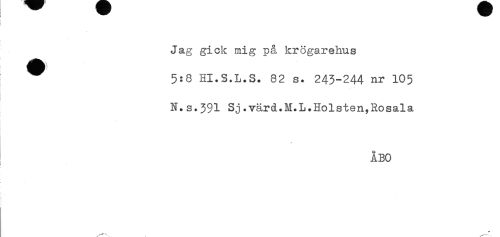 //// Jag gick mig p& krögarehus //// iilth''' //// 5:8 HI.S.L.S. 82 s. 243-244 nr 105 //// N. s. 391 Sj . värd.H.L.Holsten,Rosala //// * //// j //// ÅBO //// j ////