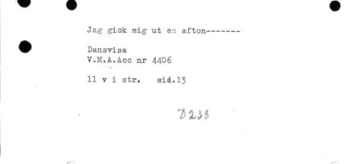 //// Jag gick mig ut en afton------- //// j Dansvisa //// ! V.M.A.Acc nr 4406 //// ! - 'i //// 11 v i str. sid.13 ////