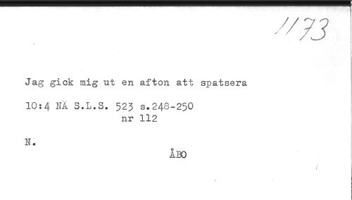 //// Jag gick mig ut en afton att spatsera //// 10:4 NA S.L.S. 523 s.248-250 //// nr 112 //// N. //// ÅBO //// * ^ ////