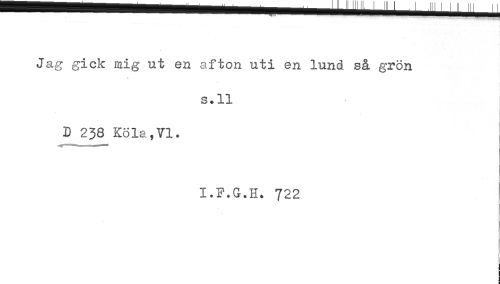 //// Jag gick mig ut en afton uti en lund så grön //// s.ll //// D 238 Köla,Vl. //// l.F.G.H* 722 ////
