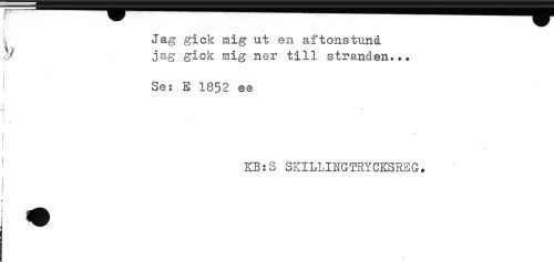 //// ^^^^^ ..... //// !, Jag gick mig ut en aftonstund //// jag gick mig ner till stranden... //// i //// t //// ' Se: E 1852 ee //// KB:S SKILLINGTRYCKSREG. ////