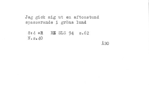//// Jag gick mig ut en aftonstund //// spasserande i gröna lund //// 8:4 +R RE SLS 94 s.62 //// N.s.40 //// ÅBO ////
