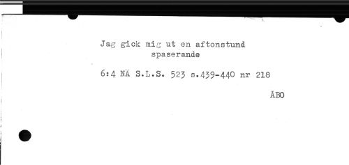 //// Jag gick mig ut en aftonstund //// < < //// spaserande //// * //// 6:4 NÄ S.L.S. 523 s.439-440 nr 218 //// ÅBO //// j ////