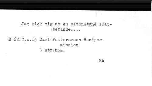 //// Jag gick mig ut en aftonstund spat- //// serande.... //// B 62:2,s.13 Carl Petterssons Bondper- //// mission //// 6 str.kom. //// RA ////