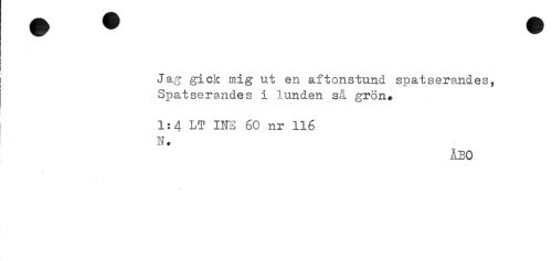 //// [ Jag gick mig ut en aftonstund spatserandes, //// Spatserändes i lunden så grön. //// 1:4 LT INE 60 nr 116 //// N. //// ÅBO ////