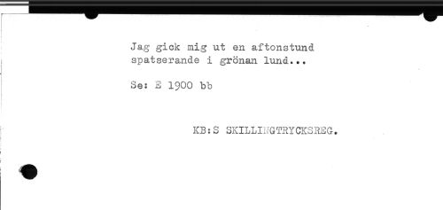 //// Jag gick mig ut en aftonstund //// i spatserande i grönan lund... //// Se: E 1900 bb //// * //// KB:S SKILLIJGTRYCKSREG. ////