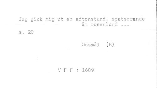 //// Jag gick mig ut en aftonstund, spatserande //// åt ros lui . . . //// s. 20 //// ödsmål (B) //// V P F : 1609 ////