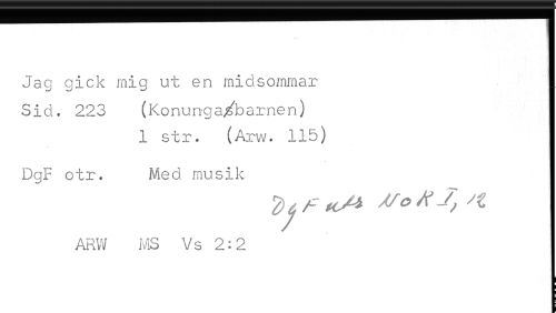 //// Jag gick mig ut en midsommar ! //// Sid. 223 (Konunga/barnen) j //// 1 str. (Arw. 115) ! //// DgF otr. Med musik j //// ARW MG Vs 2-2 ////