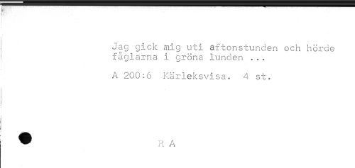 //// Jag gick mig uti aftonstunden och hörde //// fåglarna i gröna lunden ... //// A 200:6 Kärleksvisa. 4 st. //// ! //// i]]))' //// ^^ i L ^ ////