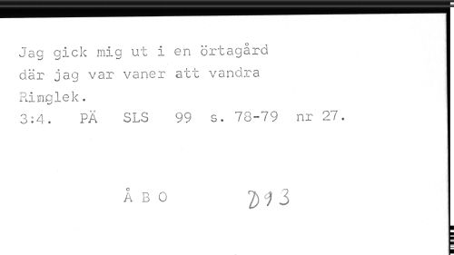 //// Jag gick mig ut i en örtagård //// där jag var vaner att vandra //// Ringlek. //// 3.2. PÄ SLS 99 s. 72,-79 nr 27. //// Å E O 2) ^ ^ //// _ ////