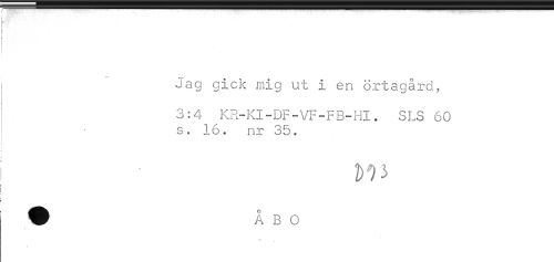 //// Jag gick mig ut i en örtagård, //// 3:4 KR-KI-DF-VF-FB-HI. SLS 60 //// s. 16. nr 35. //// i //// å *- //// < ////