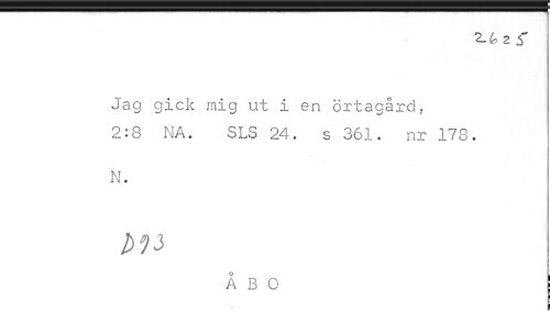 //// 2- 2 //// Jag gick mig ut i en örtagård, //// 2:8 NA. SLS 24. s 361. nr 178. //// N. //// Å B C //// - ////