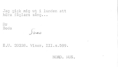//// Jag gick mig ut i lunden att //// höra fåglars sång... //// D:r //// 3 O C. 5. //// E. U. 20 20::. V i s o r, 011. s . 0 9 0 . //// NORD. i, US. ////