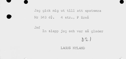 //// Jag gick mig ut till att spatsera //// # Nr 343 d), 4 str., P ärnå //// Jmf //// in slapp jag och var så gläder //// LAGUS NYLAND ////