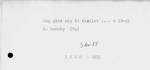 //// Jag gick mig åt stallet .... s 19-21 //// N. Lundby (Vg) //// V I F G H : 3921 //// I //// t ////
