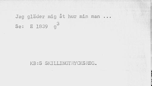 //// Jag gläder mig åt hur min man ... //// Se: E 1839 g^ //// KB:S SKILLINGT RYCKS EEG. ////