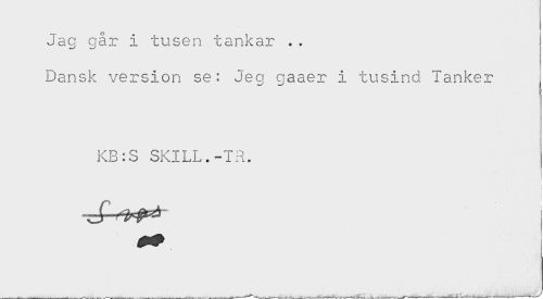 //// Jag går i tusen tankar .. //// Dansk version se: Jeg gaaer i tusind Tanker //// KB:S SKTLL.-TR. //// < //// ! //// ] H ////