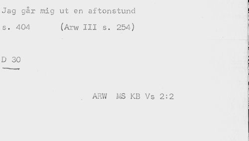 //// Jag gar mig ut en aftonstund //// s. 404 (Arw III s. 254) //// D 30 //// ARW MS KB Vs 2:2 ////