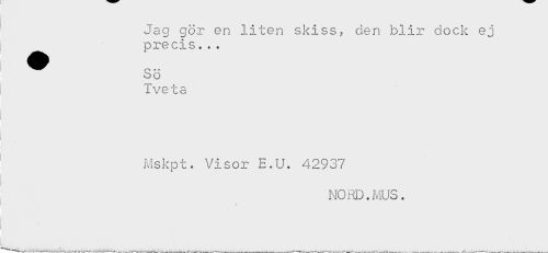 //// Jag gör en liten skiss- den blir dock ej //// precis... //// ^ SÖ //// t Tveta //// ' Mskpt. Visor E.U. 42937 //// NORD.MUS. ////
