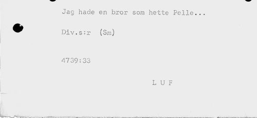 //// Jag hade en bror som hette Pelle... //// ^^ Div.s:r (Sm) //// 4739:33 //// L U F //// ! ////