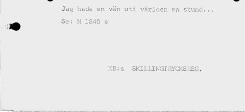 //// Jag hade en vän uti världen en stund... //// Se: N 1845 e //// KB:s SKILLINGTRYCKSREG. //// ) ////