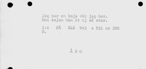//// Jag har en koja där jag-bor. //// Den kojan hon är ej så stor. //// 1:4 PÄ SLS 542 s 521 nr 295 //// N. //// r .. //// ! //// I //// j ' //// ÅBO //// ' ////