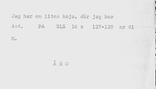 //// - //// Jag har en liten koja, där jag bor //// 4:4. PA SLS 16 s 127-128 nr 81 //// ! //// N. t //// i //// ÅBO ////