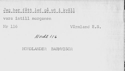 //// vara intill morgonen //// Nr 116 Värmland E.S. //// NORDLANDER BARNVISOR ////