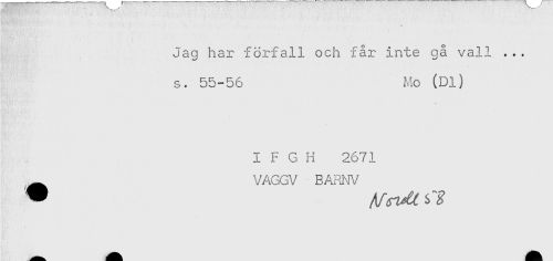 //// ' ' - . * * //// Jag har förfall och får inte gå vall ... //// s. 55-56 Mo (Dl) //// I F G H 2671 //// - VAGGV BARIW ////