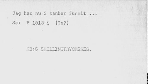 //// Jag har nu i tankar funnit ... //// Se: E 1813 i (?e?) //// KB:S SKILLINGTRYCKSREG. //// ) ////