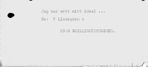 //// Jag har sett mitt ideal ... //// , Se: F Lindegren c //// KB:S SKILLINGTRYCKSREG. //// I //// t //// ---- --...----------' ------r, ////