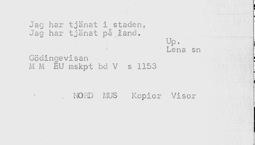 //// H^HMMt fSHaBB < //// i //// Jag har tjänat i staden? //// Jag har tjänat på land. //// Up. , //// Lena sn //// Gödingevisan ! //// M M EU mskpt bd V s 1153 //// H //// ) //// . mPD MUS Kopior Visor ////