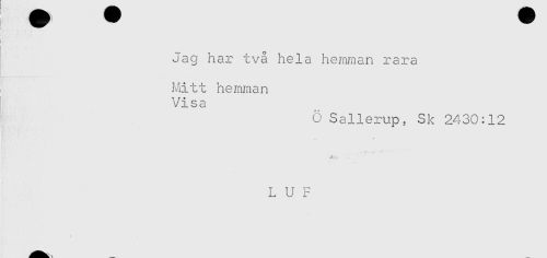 //// wy * v //// i //// Jag har två hela hemman rara //// L... .. //// .. //// Mitt hemman //// Visa //// ö Sallerup, Sk 2430:12 //// L U F ////
