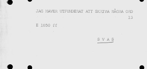 //// JAG HAVER UTFUNDERA! ATT SKRIVA NÅGRA ORD //// 13 //// E 1850 ff //// * //// S V A S ////