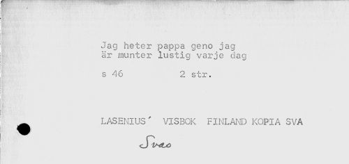 //// } //// Jag heter pappa geno jag //// är munter lustig varje dag //// s 46 2 str. //// LASENIUS' VISBOK FINLAND KOPIA SVA ////