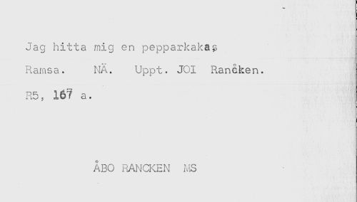 //// Jag hitta mig en pepparkaka^ //// Ramsa. NA. Uppt. JOI Rancken. //// R5, 167 a. //// ÅBO RANCKEN MS ////