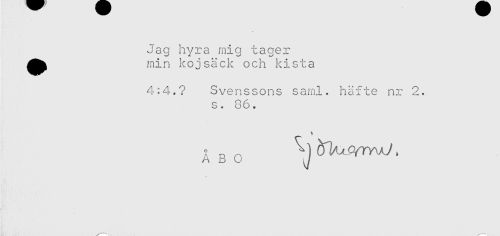 //// Jag hyra mig tager //// min koj säck och kista //// 4:4.? Svenssons saml. häfte nr 2. //// s. 86. //// T //// ÅBO ////