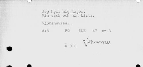 //// Jag hyra mig tager. //// Min säck och min kista. //// Si ömansvisa. //// 6:6 FÖ INE 47 nr 8 //// i //// t //// ^ A B O v //// * ////