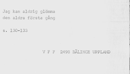 //// Jag kan aldrig glömma //// den aldra första gång //// s. 130-133 //// V F F 2498 BÄLINGE UPPLAND ////