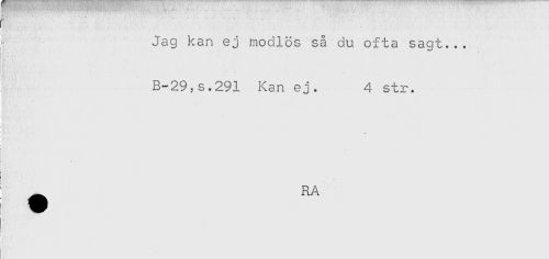 //// . ..... . . . . . //// Jag kan ej modlös så du ofta sagt... //// . < .' . * . //// ! B-29,s.291 Kan ej. 4 str. //// i //// RA ////