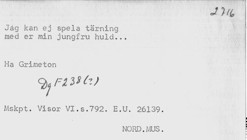 //// Jäg kan ej spela tärning //// med er min jungfru huld... //// '. //// Ha Grimeton //// , ' ! //// Mskpt. Visor VI.s.792. E.U. 26139. //// NORD. ms. ' //// t- ////