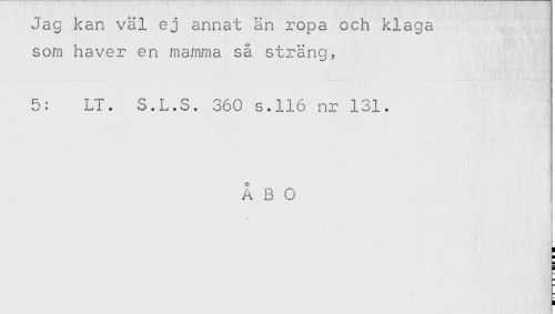 //// Jag kan väl ej annat än ropa och klaga //// som haver en mamma så sträng, //// 5: LT. S.L.S. 360 s.116 nr 131. //// ÅBO ////