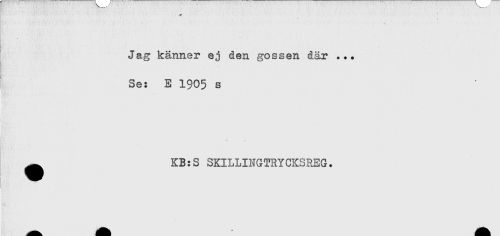 //// . ' ' ^ . . - . - //// '. - * * ' ' t- //// Jag känner ej den gossen där ... //// Se: E 1905 s //// ^ KB:S SKILLINGTRYCKSREG. ////