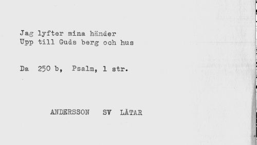 //// Jag lyfter mina händer //// Upp till Onds berg och hus //// Da 250 b, Psalm, 1 str. //// a //// ANDERSSON SV LÅTAR ////