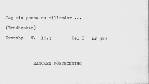 //// Jag min penna nu tillreder ... //// (Brudönskan) //// Kronoby Yf. 10.3 Del I nr 323 //// RANCKEN FÖRTECKNING ////