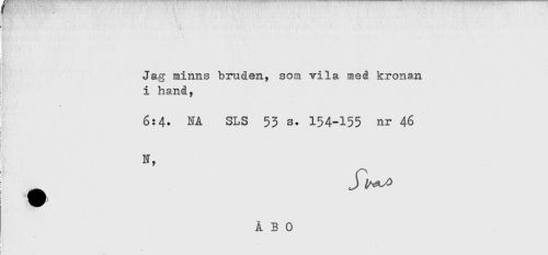 //// < //// < //// Jag minns bruden, som vila med kronan //// i hand, //// 6:4. NA SLS 53 s. 154-155 nr 46 //// i //// t //// N, //// i Jl^ ////